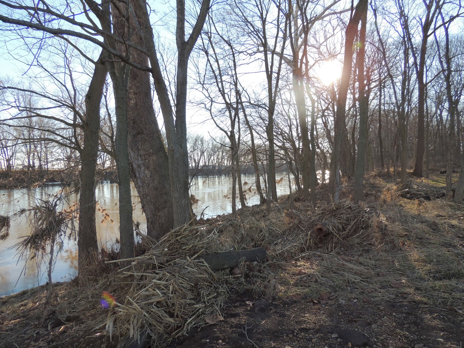 The muskrat homes that were there the last time we visited were gone and so were the birdhouses that were around the pond.